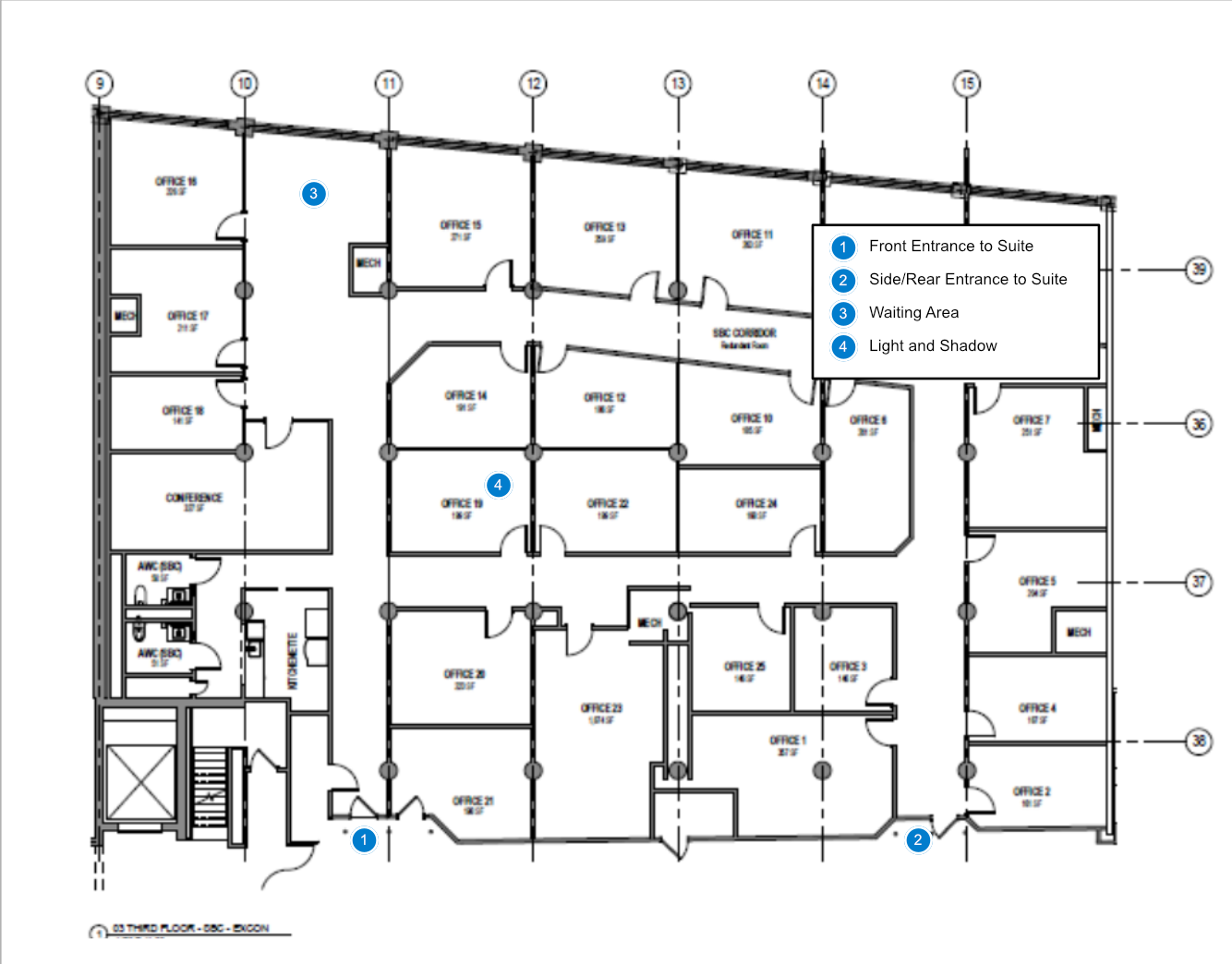 Light and Shadow is in Suite 305, the Small Business Center. Enter at either the front or side entrances to Building One and take the elevator to the third floor. Suite 305 is about halfway down the corridor. There are two entrances to Suite 305, please refer to the map to find Light and Shadow in room 19.